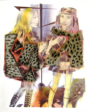 gouache, ballpoint pen, paper, artificial fur