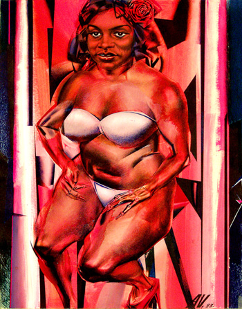 fluorescent gouache, color ballpoint pens, paper