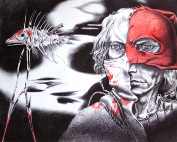 ballpoint pen, gouache, paper